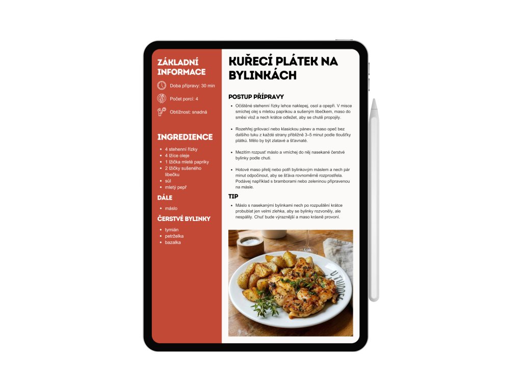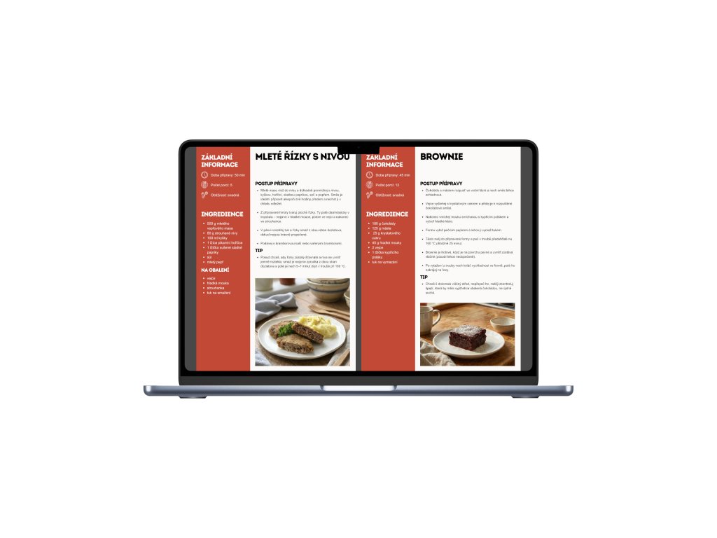 Každý recept je na samostatné stránce s jasným postupem a seznamem surovin. - Digitální pohodlí