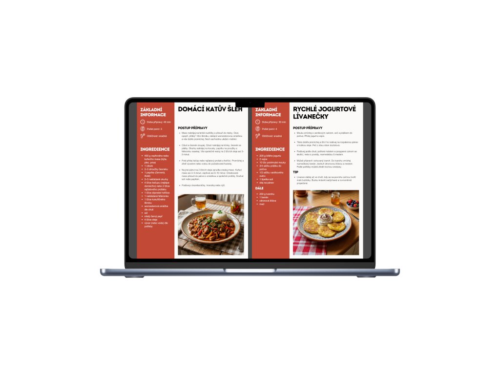 Tento balíček spojuje dvě praktické e-kuchařky a dohromady přináší více než 100 ověřených domácích receptů, které pokryjí běžné vaření od rána do večera.